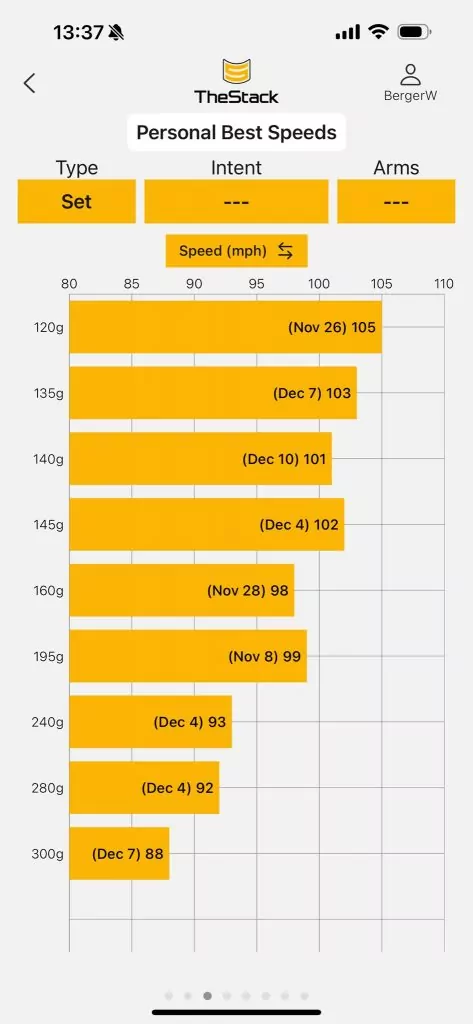 November 2021: 93 mph mit dem Driver.